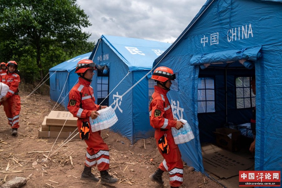 “今天一早,村干部就给我们送来了水和面包,叮嘱不能再住在房子里。不久后,消防官兵就来为我们搭帐篷了。”村民杨绍美说。