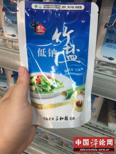 超市中在售的价位比较高的低钠盐。中新网吴涛 摄