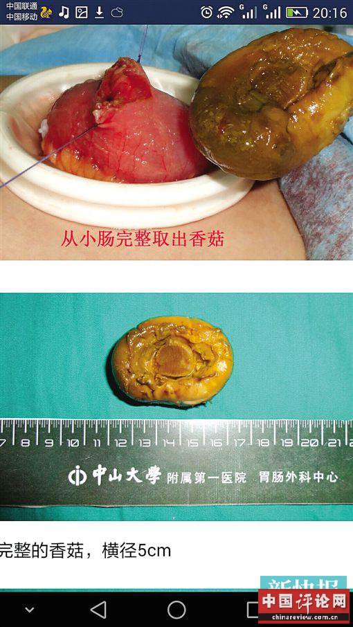 误吞香菇切掉小肠 竟取出一朵完整的香菇