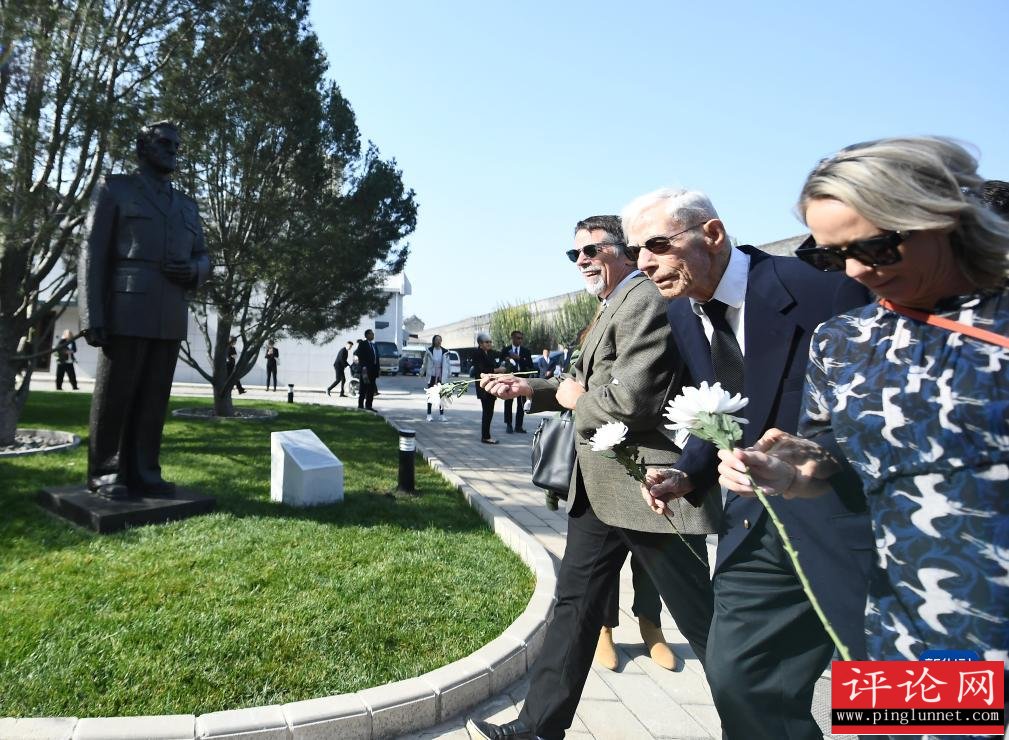 10月30日,中国人民抗日战争纪念馆,庄严肃穆的音乐响起,两位美国老兵恭敬地向抗战英烈群像献上花篮,并深深鞠躬、表达敬意。