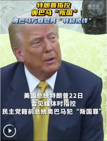 美国总统特朗普22日会见媒体时指控民主党籍前总统奥巴马犯“叛国罪”,称其试图“窃取选举”。奥巴马发言人随即予以驳斥,称这是“转移视线的拙劣伎俩”。