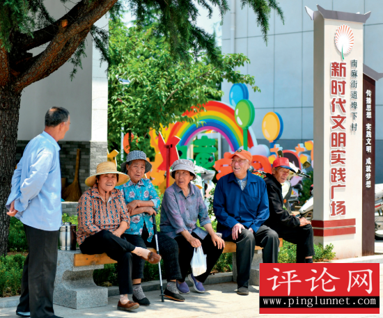 2022年6月15日,山东省沂源县南麻街道埠下村村民在民生综合体活动广场休息。自2021年以来,沂源县建设多处以老年食堂、公共浴室、中心村卫生室(便民药店)、便民超市为主体,其他服务功能相补充的多位一体民生综合体 朱峥摄/本刊