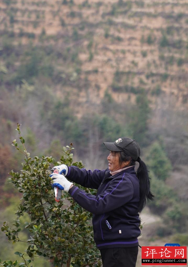 2月24日,在位于江西赣州市经开区湖边镇蛤湖村的白石下油茶基地,农户在修剪植株。新华社记者 周密 摄