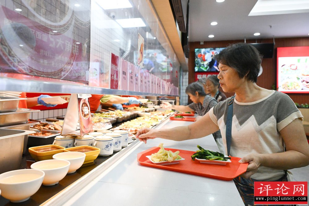 老人正在杭州翠苑一区老年食堂挑选餐品(7月25日摄)。新华社记者 李贺 摄