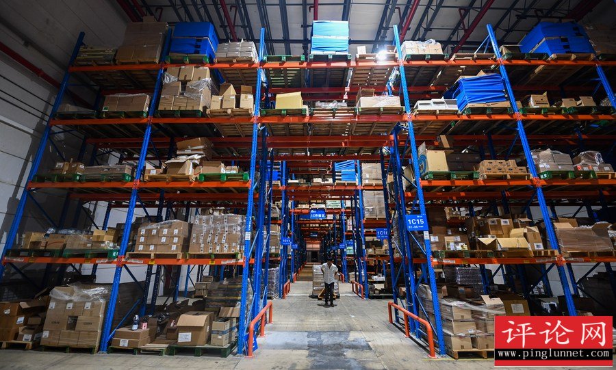 2022年9月2日,在杭州综合保税区一家跨境保税仓内,工作人员在搬运跨境电商保税进口商品。新华社记者 徐昱 摄