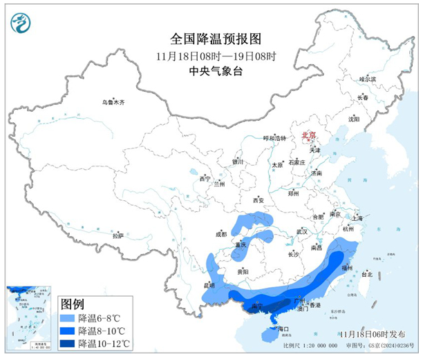 中央气象台11月17日18时继续发布寒潮和大风蓝色预警。自11月14日开始的今年下半年首次全国性寒潮过程,降温幅度大、大风天气显著、一些地方降下暴雪,...