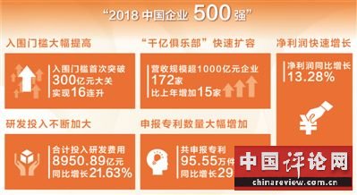 净利润快速增长。“2018中国企业500强”净利润比上年增长13.28%,扭转了连续3年增速下滑态势,创下2013年以来的最高值。