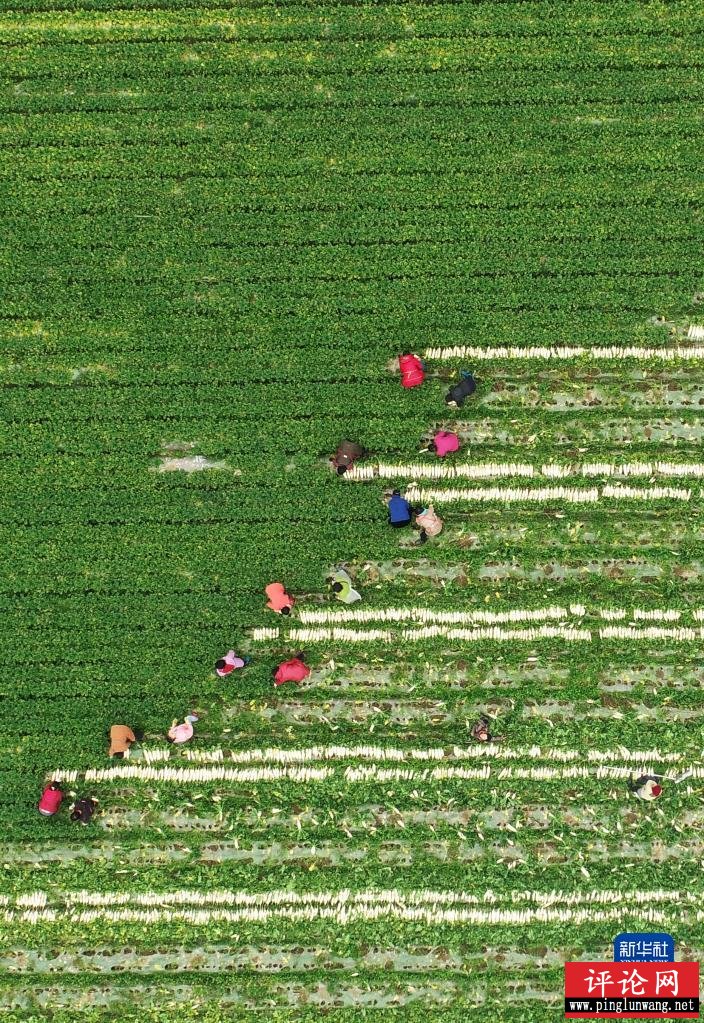 3月8日,河北省邢台市南和区河郭镇辛庄村农民在田间劳作(无人机照片)。新华社发(张驰摄)