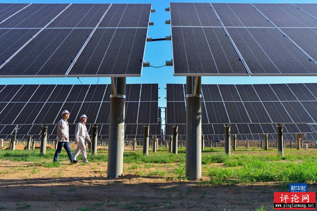 工作人员在内蒙古自治区鄂尔多斯市伊金霍洛旗天骄绿能50万千瓦采煤沉陷区生态治理光伏发电示范项目区里巡查(2021年7月8日摄)。 新华社发(王正 摄)