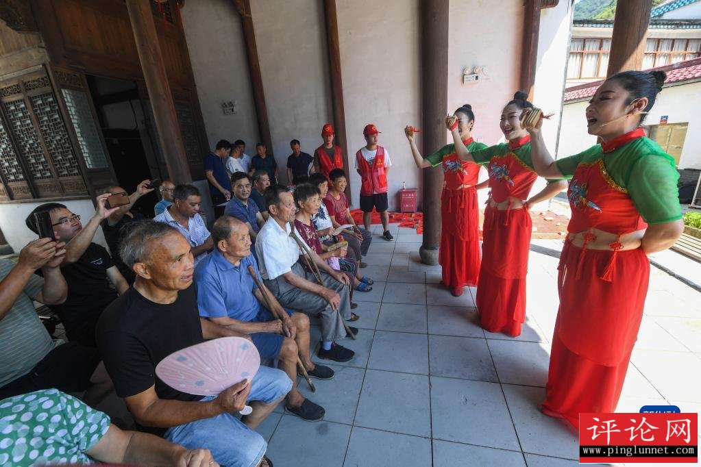 浙江省杭州市临安区高虹镇廉政文艺宣传队在石门村表演快板小段《清廉高虹》(2021年9月1日摄)。新华社记者 徐昱 摄