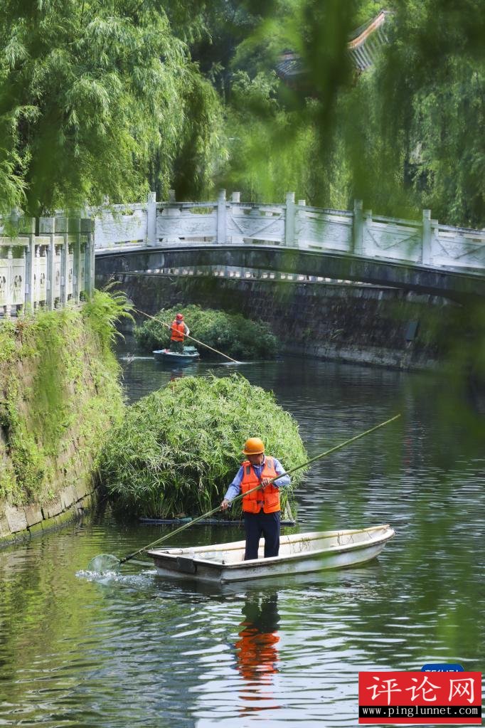工作人员在重庆永川临江河红旗河段清漂(2022年5月7日摄)。新华社发(刘欢 摄)
