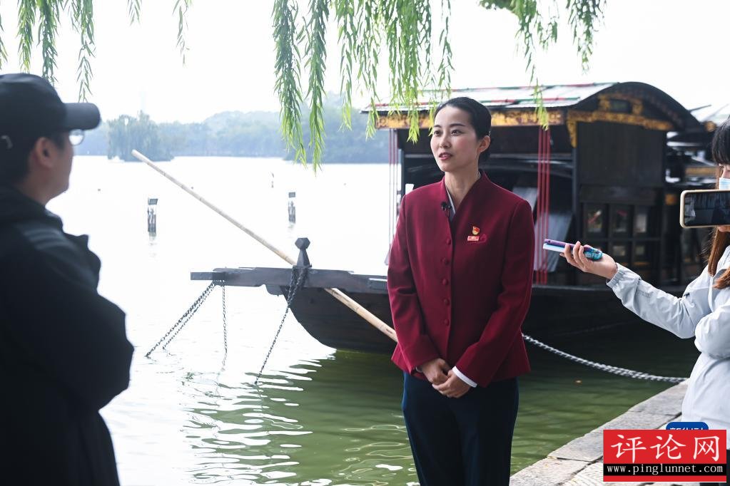 10月16日,在浙江省嘉兴市,南湖革命纪念馆讲解员张一在接受采访。新华社记者 徐昱 摄
