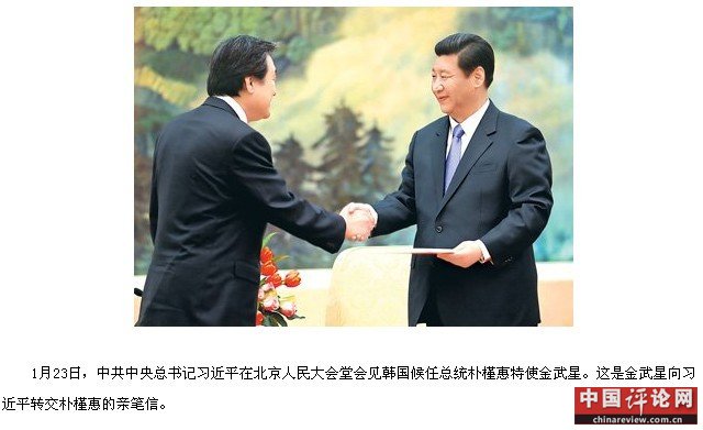 习近平23日在北京接受韩国候任总统朴槿惠特使的亲笔信,而同样正在中国访问的日本首相安倍晋三的“信使”山口那津男却未受到习近平接见。山口22日开始访华,...