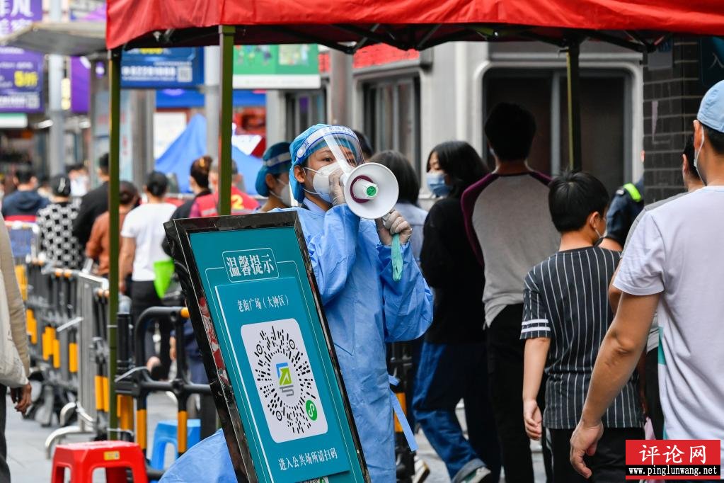 3月13日,志愿者在深圳罗湖区东门广场核酸检测点引导居民。新华社发(储焱摄)
