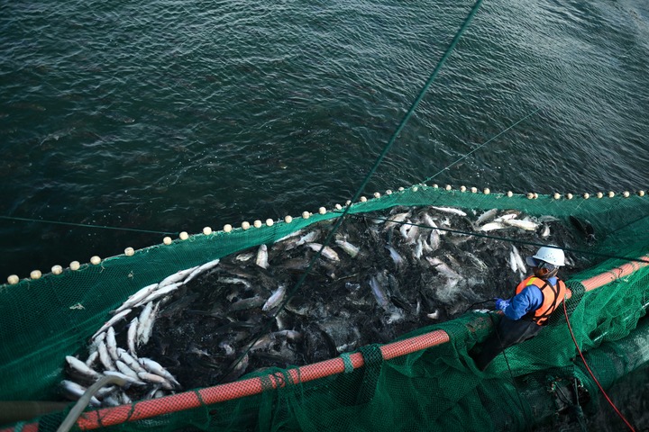 51岁的冯庭贵住在青海省海南藏族自治州共和县龙羊峡镇,是龙洋知鲜(青海)股份有限公司捕捞队队长。“传统吊网捕捞会让虹鳟鱼产生更多肌酸,让虹鳟鱼的口感大打折扣。我们现在用吸鱼泵连鱼带水直接送入车间,保证了鱼的肉质鲜嫩。”冯庭贵说。